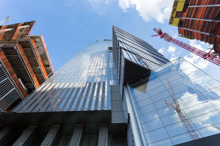 10 Hudson Yards, opened in 2016, one of the first completed buildings, surrounded by the ongoing construction, via NYTimes.